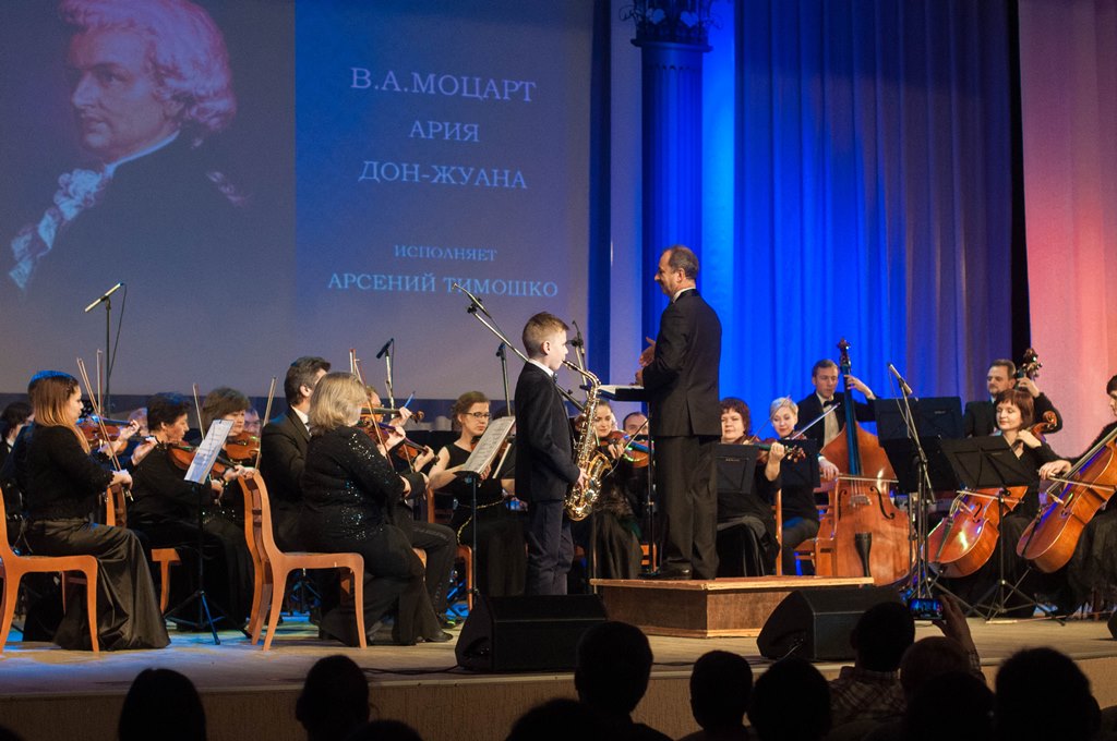 Самому младшему участнику ученику 1-ой ДМШ №1 г: Гродно Арсению Тимошко, — 10лет. Он всего полтора года занимается на саксофоне, но уже уверенно продемонстрировал свои возможности, исполнив арию Дон Жуана из одноимённой оперы В.А.Моцарта.