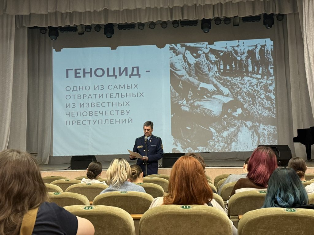 В ходе встречи Андрей Иванович рассказал о политике геноцида нацистской Германии в отношении Беларуси, о фактах массового уничтожения людей, установленных в ходе расследования уголовного дела Генеральной прокуратуры Республики Беларусь.