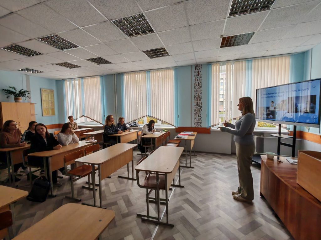 7 октября для учащихся групп ОМ II -445, ДО – II -446 состоялось коррекционно-развивающее занятие с элементами тренинга «Держись за жизнь!» с участием члена республиканского общественного объединения «Жизнь без наркотиков» Долговской Е.М.