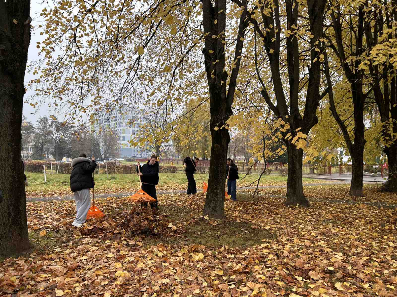 3 ноября учащиеся колледжа приняли участие в экологической акции «Экологический десант» по уборке листвы совместно с ЖЭС 9 на территории
