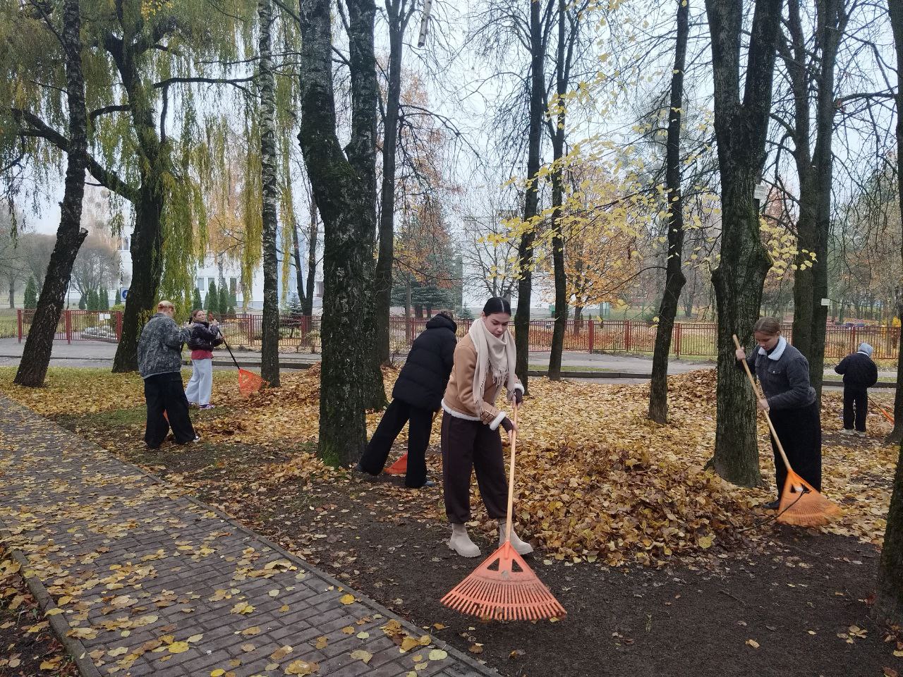 8 ноября учащиеся колледжа приняли участие в экологической акции «Экологический десант» по уборке листвы совместно с ЖЭС 9 на территории Ленинского