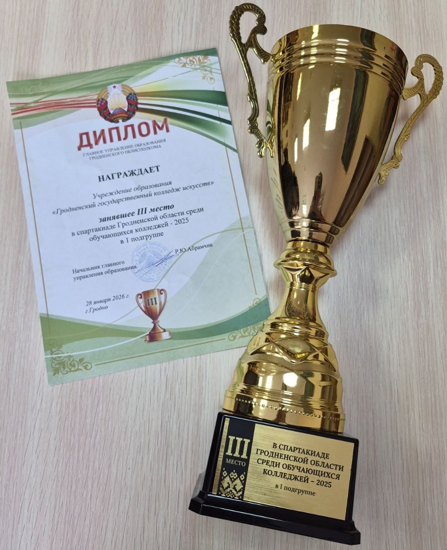 Поздравляем!УО “Гродненский государственный колледж искусств, занявших III место в спартакиаде Гродненской области среди обучающихся колледжей – 2025 в 1 подгруппе