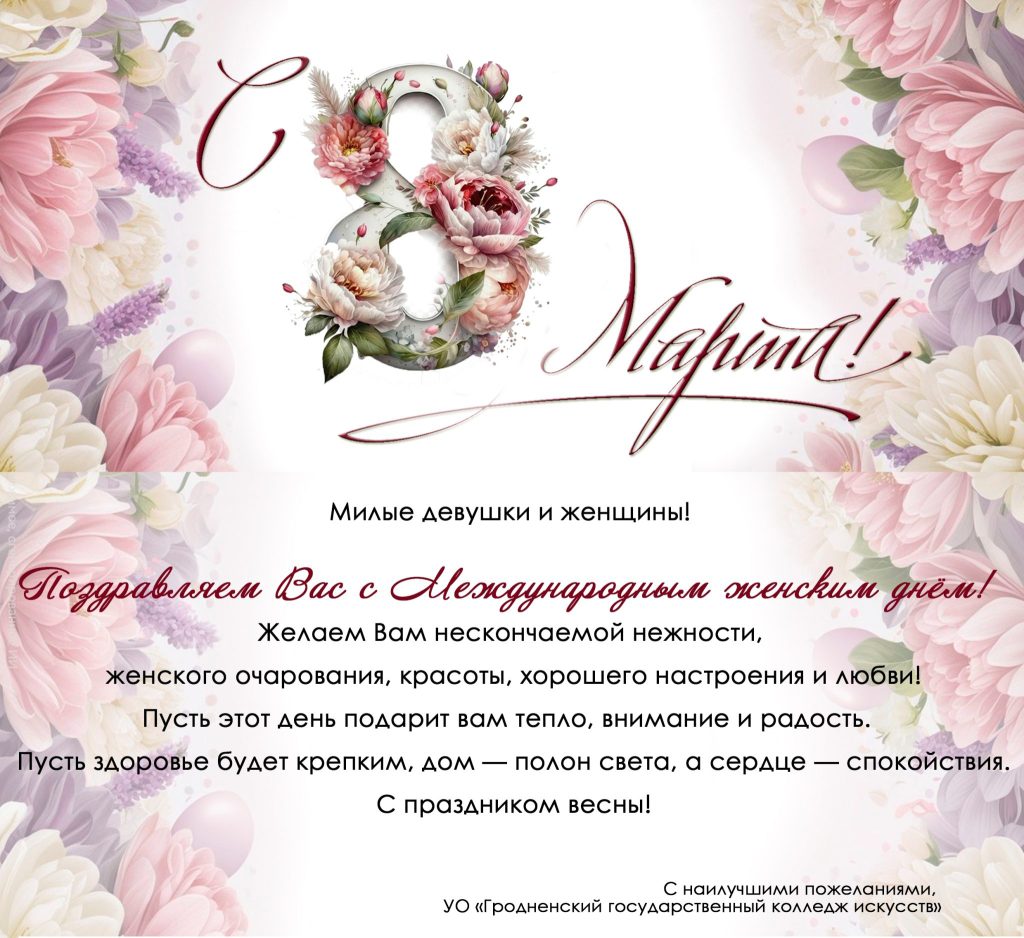 Милые девушки и женщины! От всей души поздравляем Вас с 8 Марта!