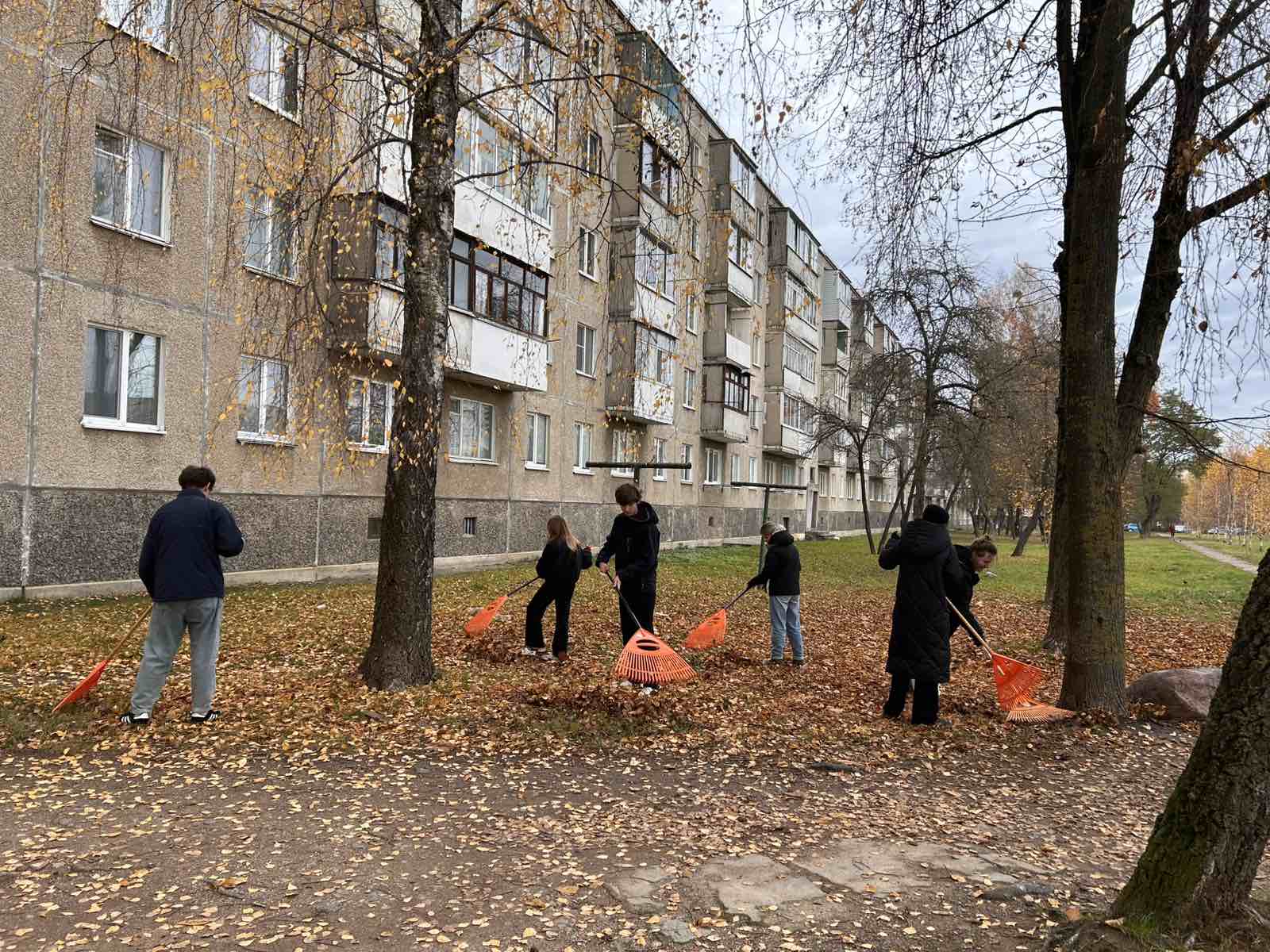 3 ноября учащиеся колледжа приняли участие в экологической акции «Экологический десант» по уборке листвы совместно с ЖЭС 9 на территории
